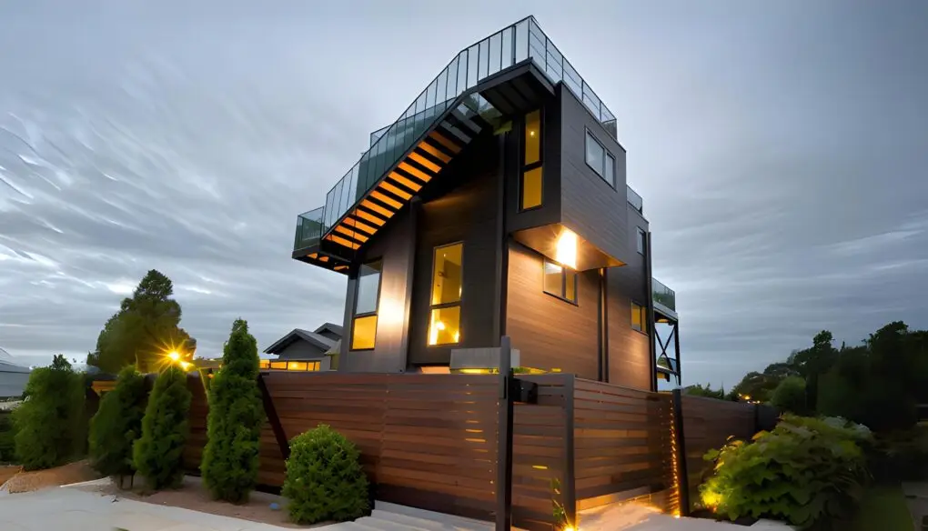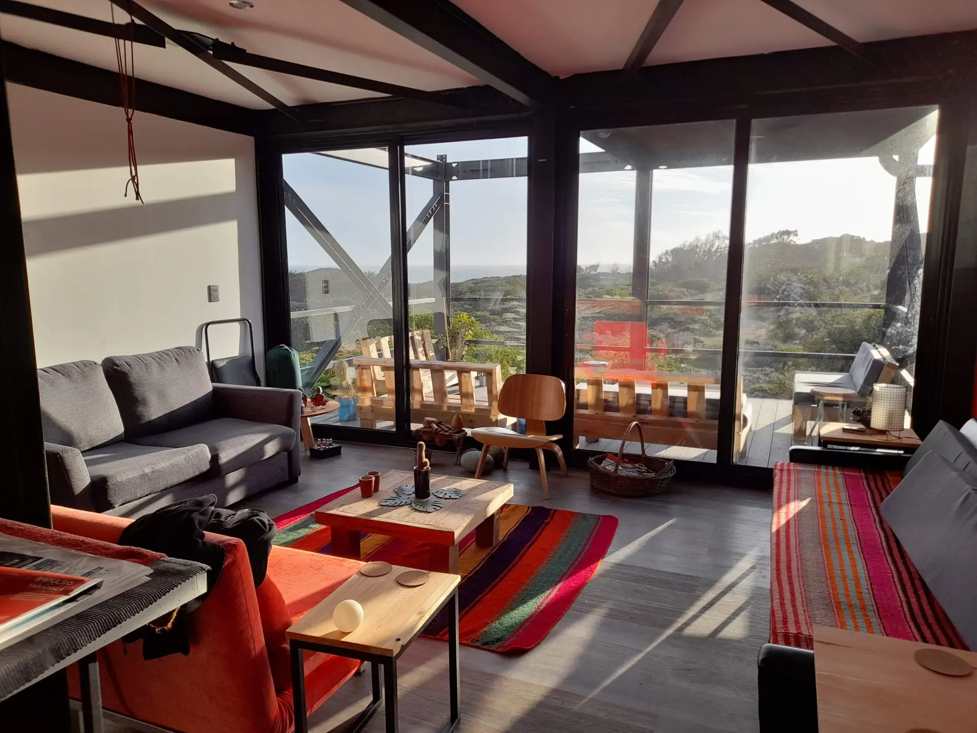 Los revestimientos y el deck están fabricados en WPC, y se fusionan con una terraza en el cuarto nivel que ofrece una espectacular vista de 360° hacia el maravilloso entorno del Parque Nacional Puquen y el océano.