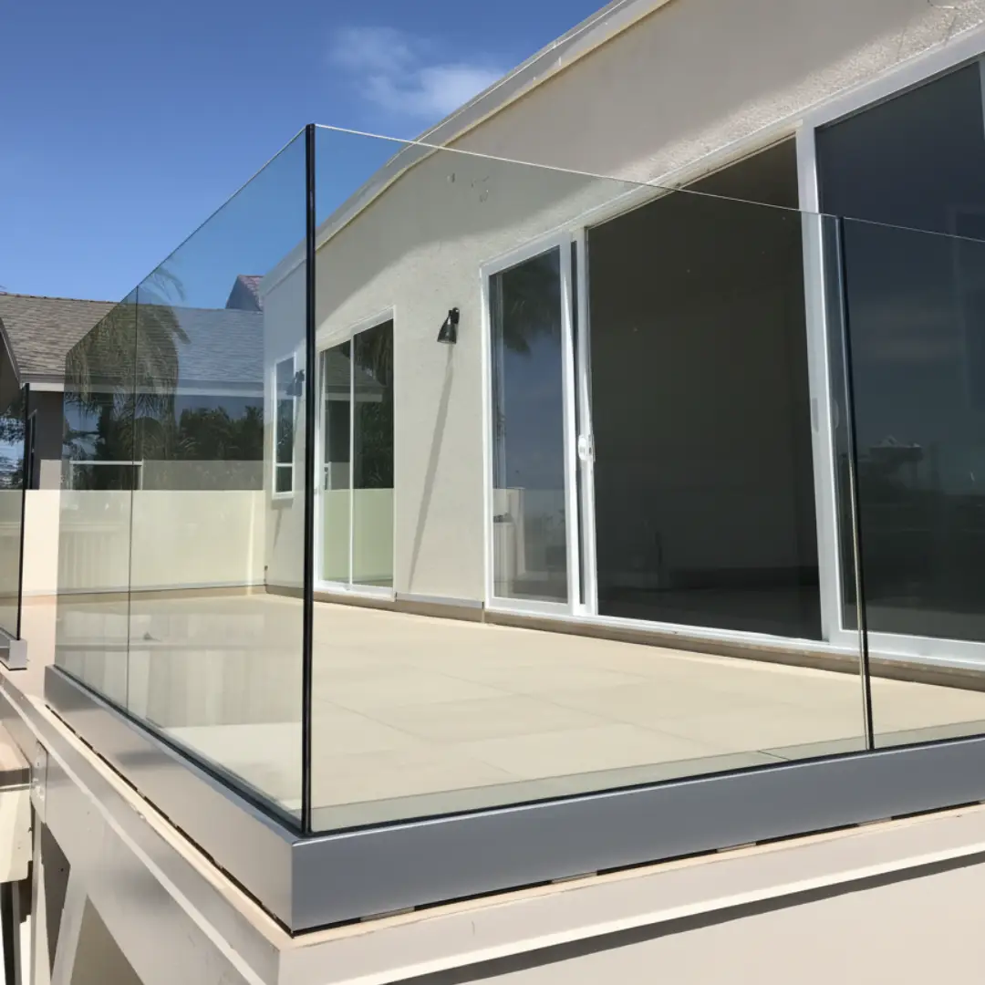 Sistema de barandas compuesto por paneles de vidrio templado montados sobre un perfil continuo de aluminio o acero. El perfil inferior aloja y fija el vidrio, generando una línea perimetral limpia y uniforme, mientras que la superficie acristalada ofrece máxima transparencia y una estética minimalista. Su construcción robusta está pensada para uso intensivo en entornos residenciales y comerciales.