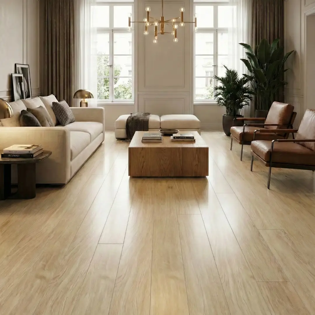 Porcelanato tipo madera de 20 cm x 120 cm con diseño de roble rojizo claro y vetas naturales bien definidas. Su tonalidad cálida y equilibrada aporta una sensación clásica y acogedora, ideal para espacios que buscan elegancia atemporal sin perder luminosidad. Acabado mate, alta resistencia y fácil mantenimiento para uso diario.