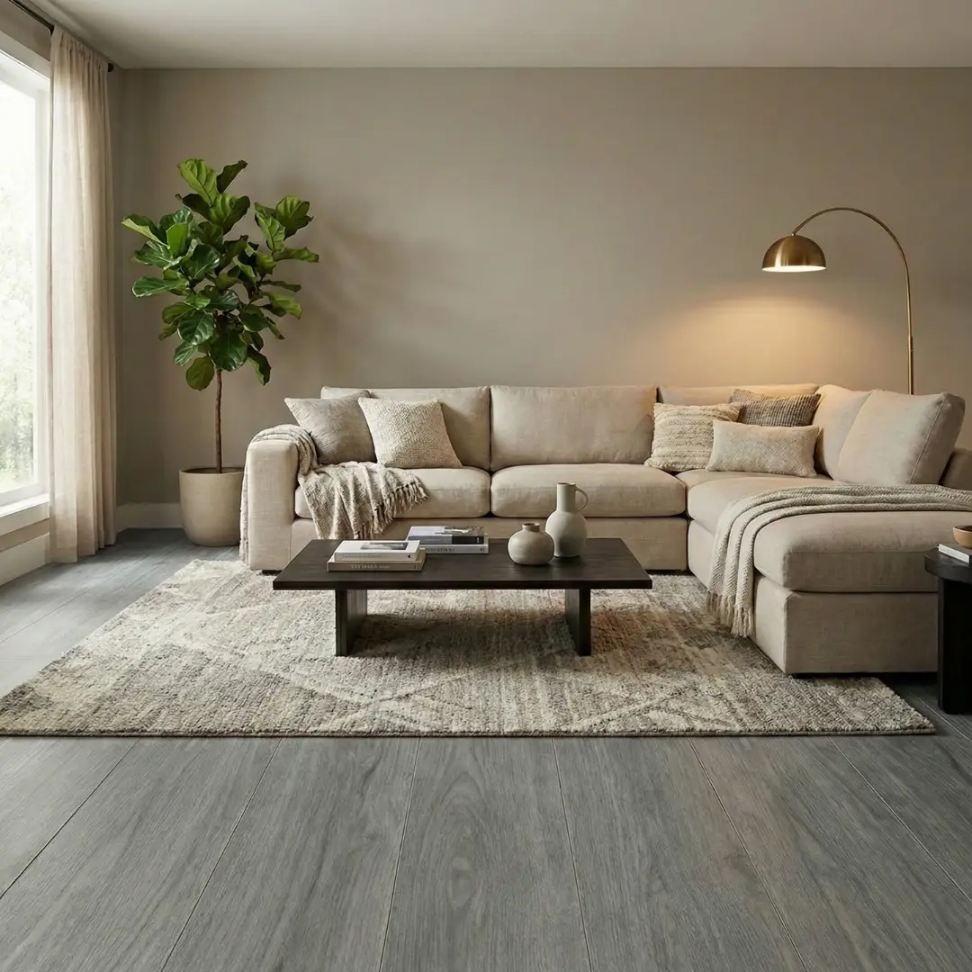 Porcelanato tipo madera de 20 cm x 120 cm en una sofisticada tonalidad gris ceniza con vetas orgánicas profundas. Su diseño ofrece una estética moderna y equilibrada que rompe con los tonos madera tradicionales, aportando un aire de vanguardia y serenidad a cualquier ambiente. Material de alta resistencia con acabado mate, ideal para proyectos que buscan durabilidad y un estilo contemporáneo impecable.