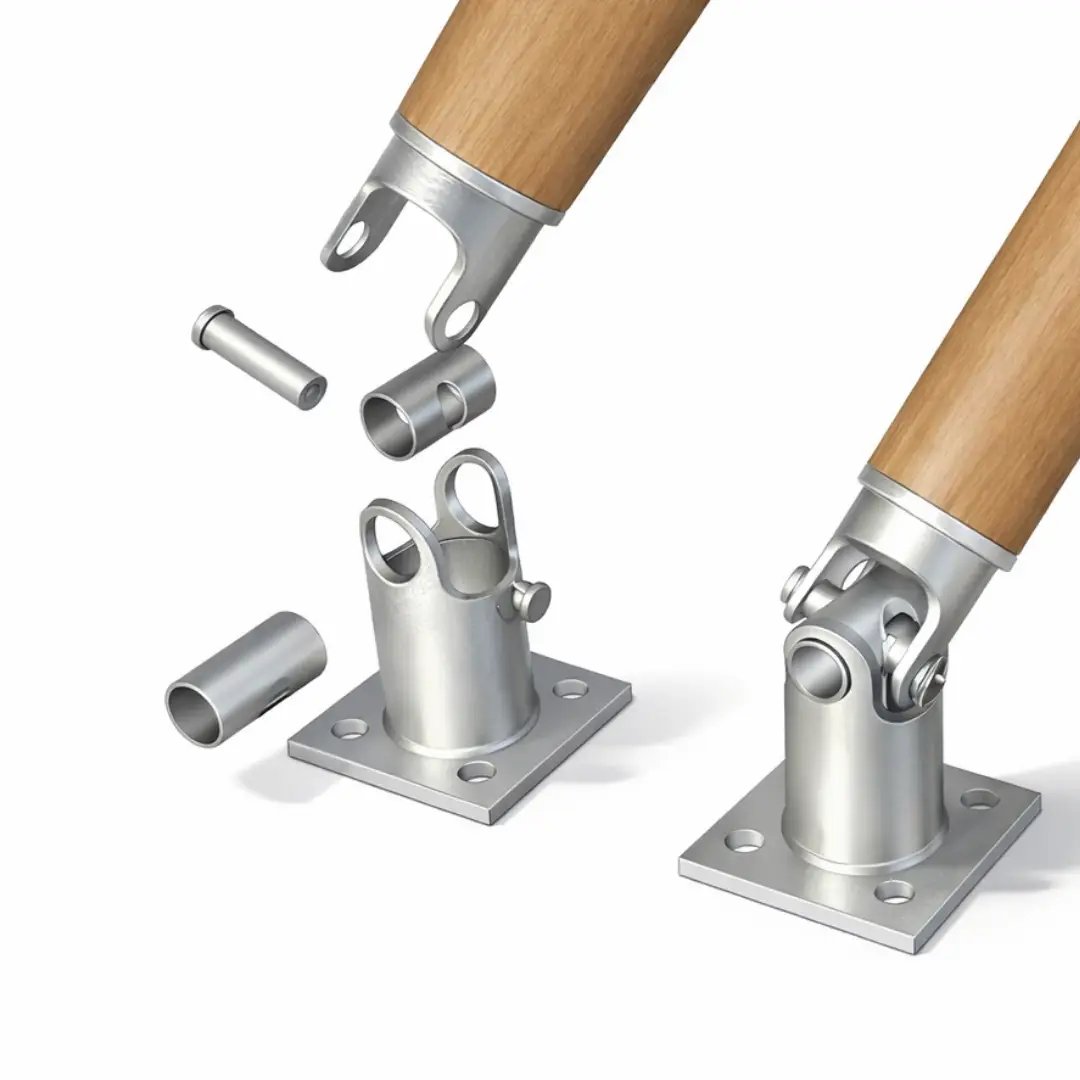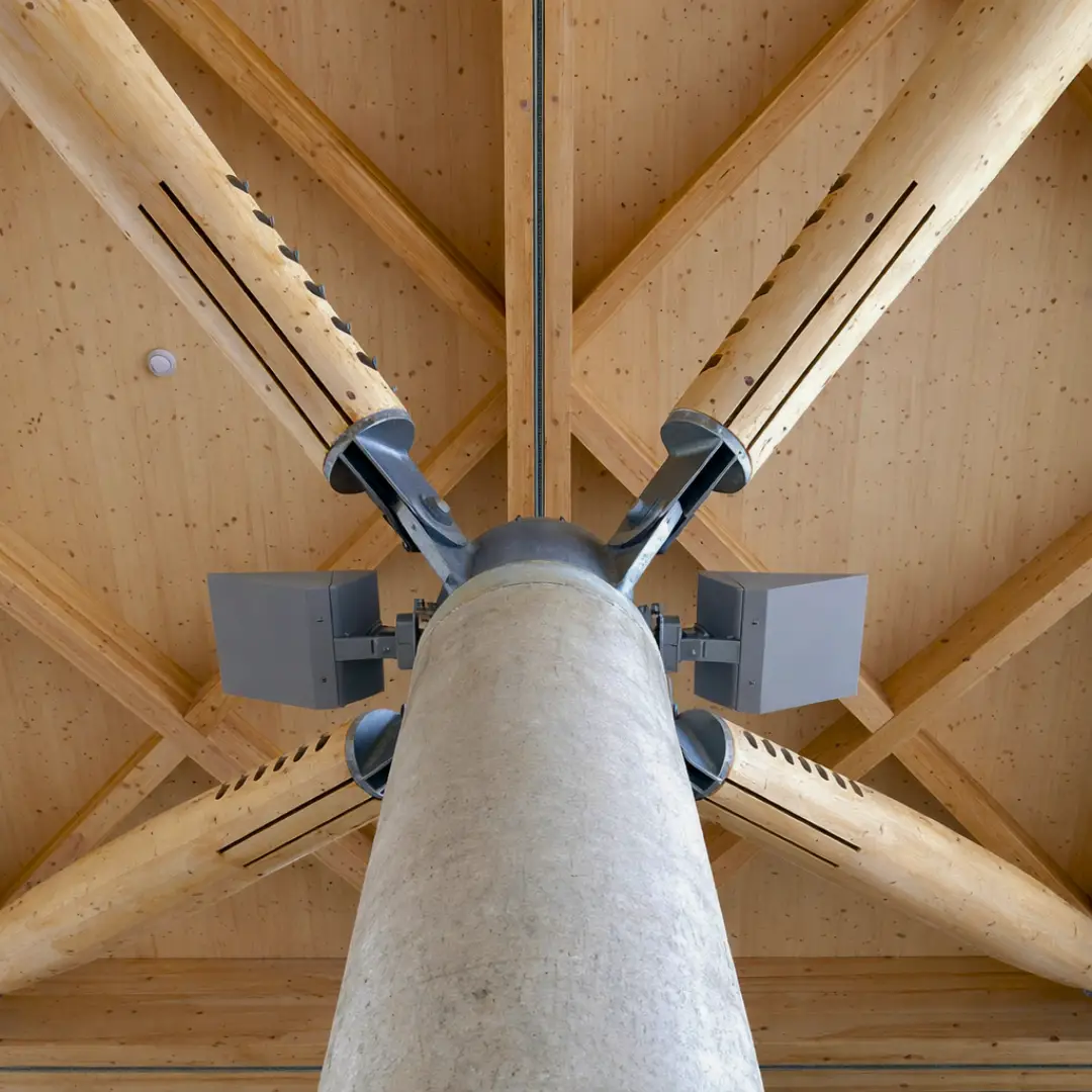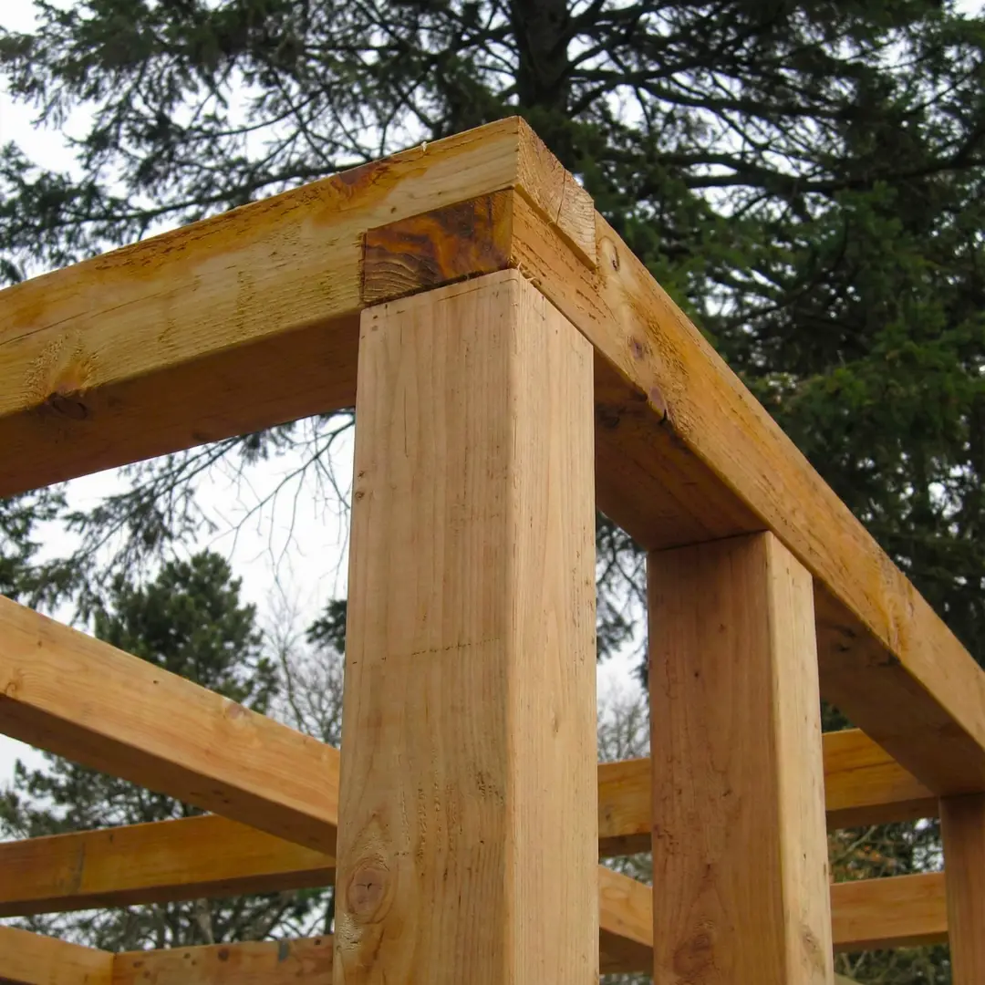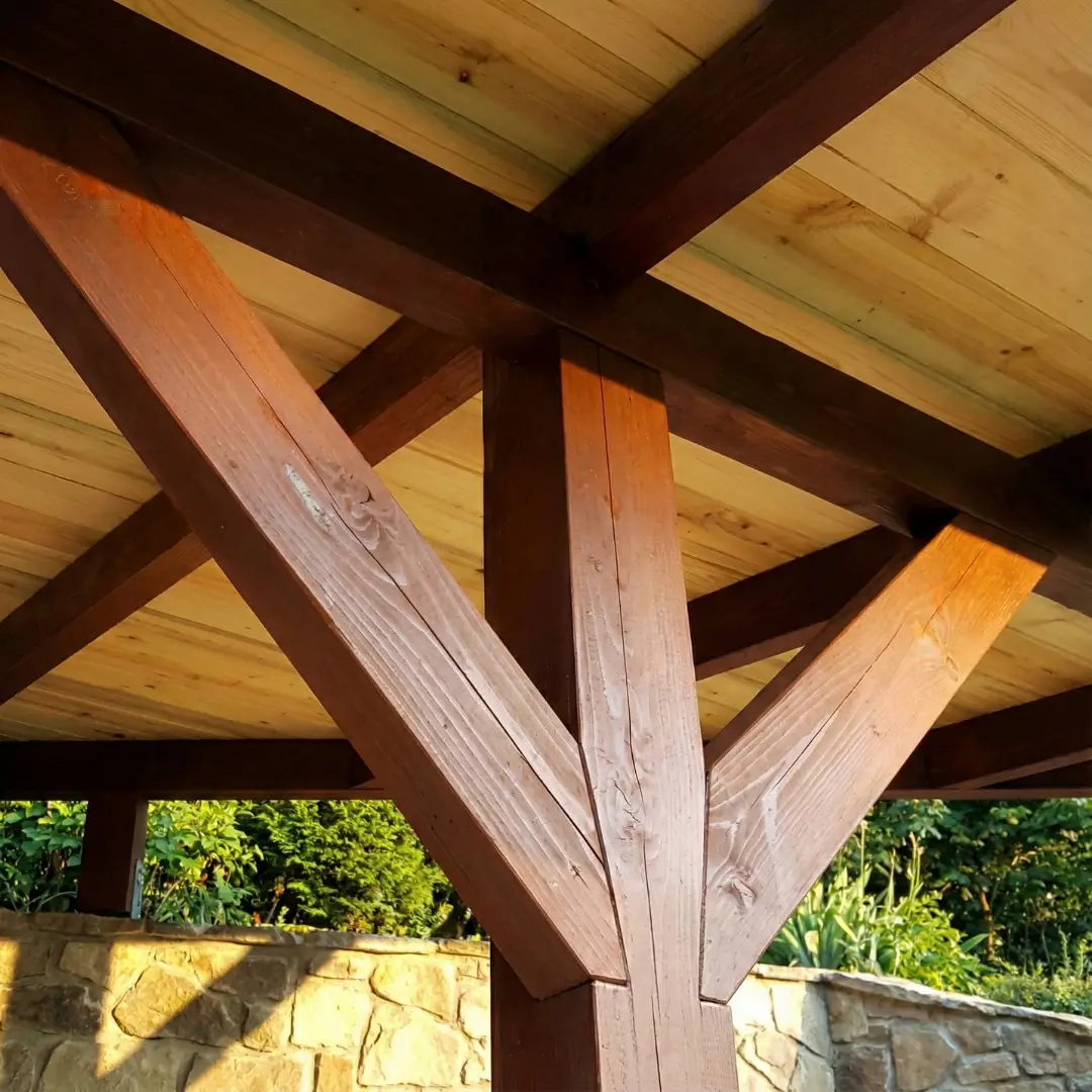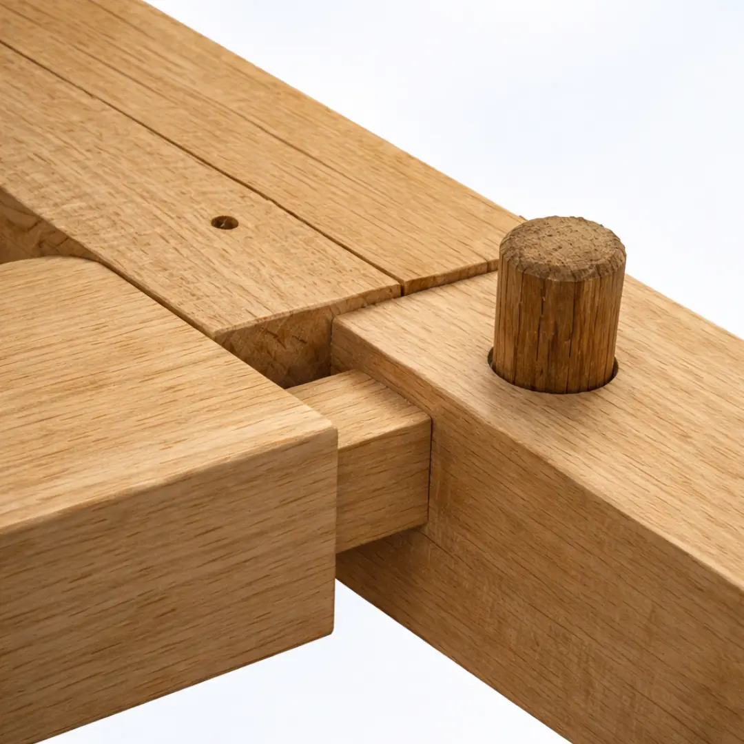 Sistemas tradicionales o híbridos que combinan técnicas de carpintería estructural con refuerzos modernos, incluyendo conectores cilíndricos ajustables.