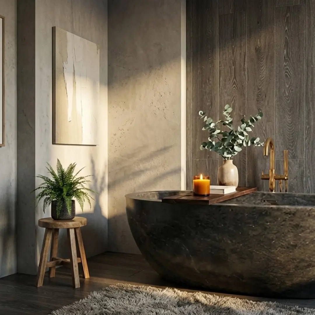 Porcelanato tipo madera de 20 cm x 120 cm en una imponente tonalidad gris antracita con vetas finas y elegantes. Su diseño representa la evolución del estilo escandinavo hacia el “Dark Nordic”, ofreciendo una superficie sobria que proyecta lujo y modernidad absoluta.