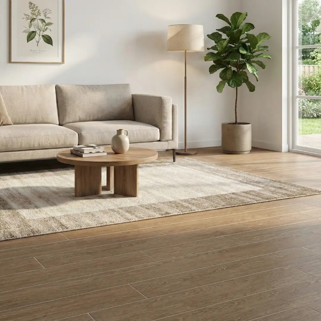 Porcelanato tipo madera de 20 cm x 120 cm en tono nogal profundo con vetas orgánicas muy marcadas. Este modelo destaca por su gran realismo táctil y visual, ideal para quienes buscan la personalidad de la madera rústica con un acabado elegante y sobrio. Ofrece una superficie de alta fricción y resistencia, perfecta para ambientes con carácter.