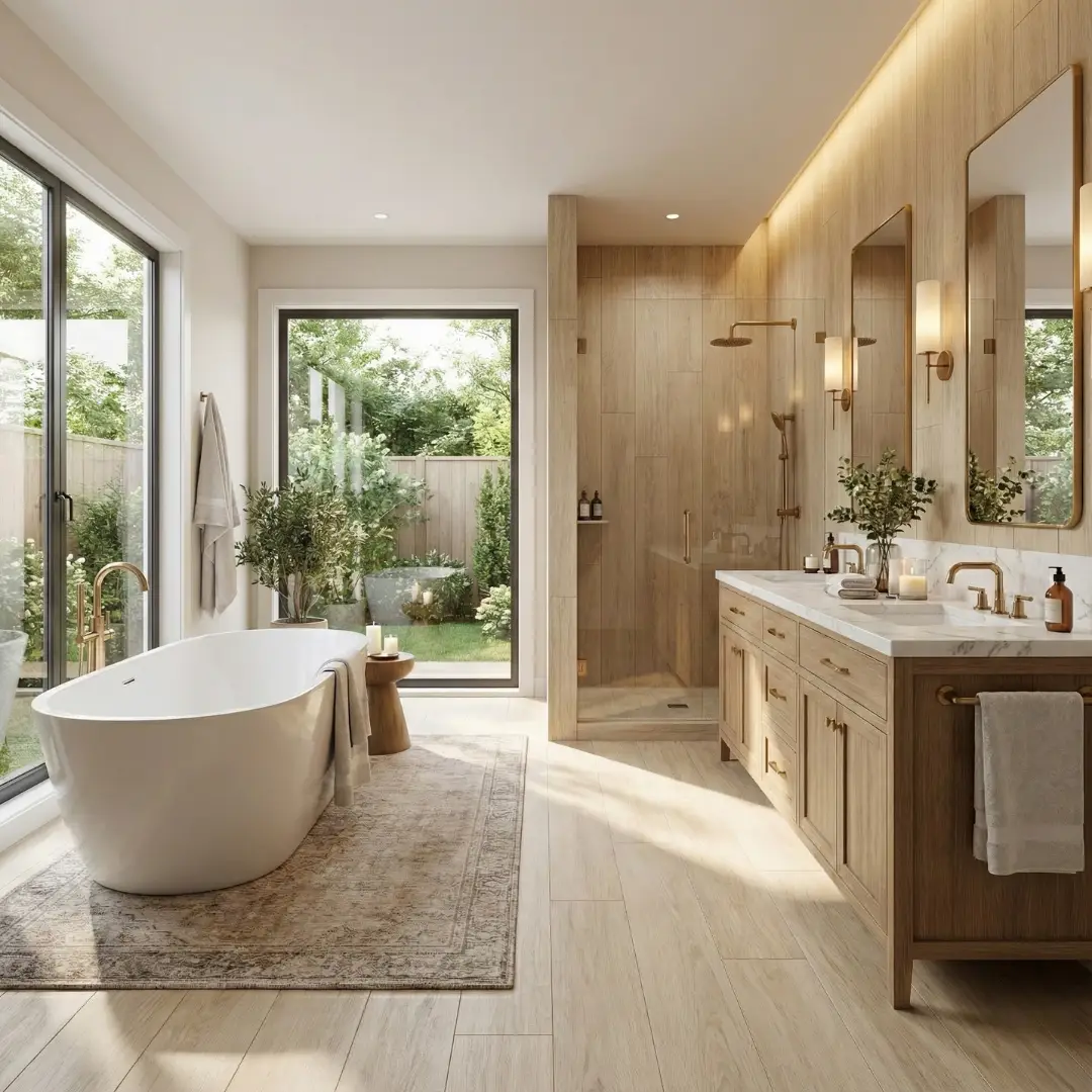 Porcelanato tipo madera de 20 cm x 120 cm con diseño de madera recuperada, resaltando nudos y vetas naturales. Su textura rica y tonalidad miel suave aportan una calidez auténtica, logrando un aspecto artesanal sin las complicaciones de mantenimiento de la madera real. Es un material robusto, con alta resistencia al desgaste y un acabado mate antideslizante.