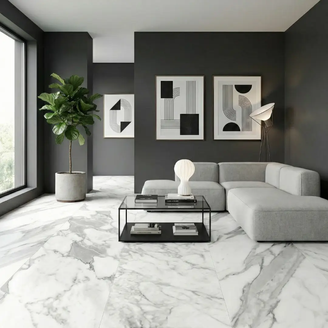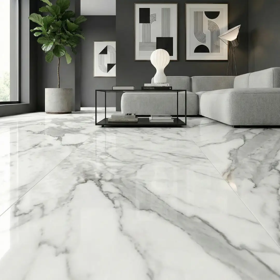 Este mármol blanco estilo Carrara destaca por su veteado gris fino, que aporta un look elegante y atemporal. Su diseño luminoso ayuda a ampliar visualmente los espacios y combina muy bien con estilos modernos, minimalistas y clásicos. Las vetas sutiles entregan un acabado sofisticado sin recargar el ambiente. Ideal para proyectos que buscan una estética limpia y premium. Su formato 90 x 180 cm permite superficies más continuas y con menos cortes visuales.