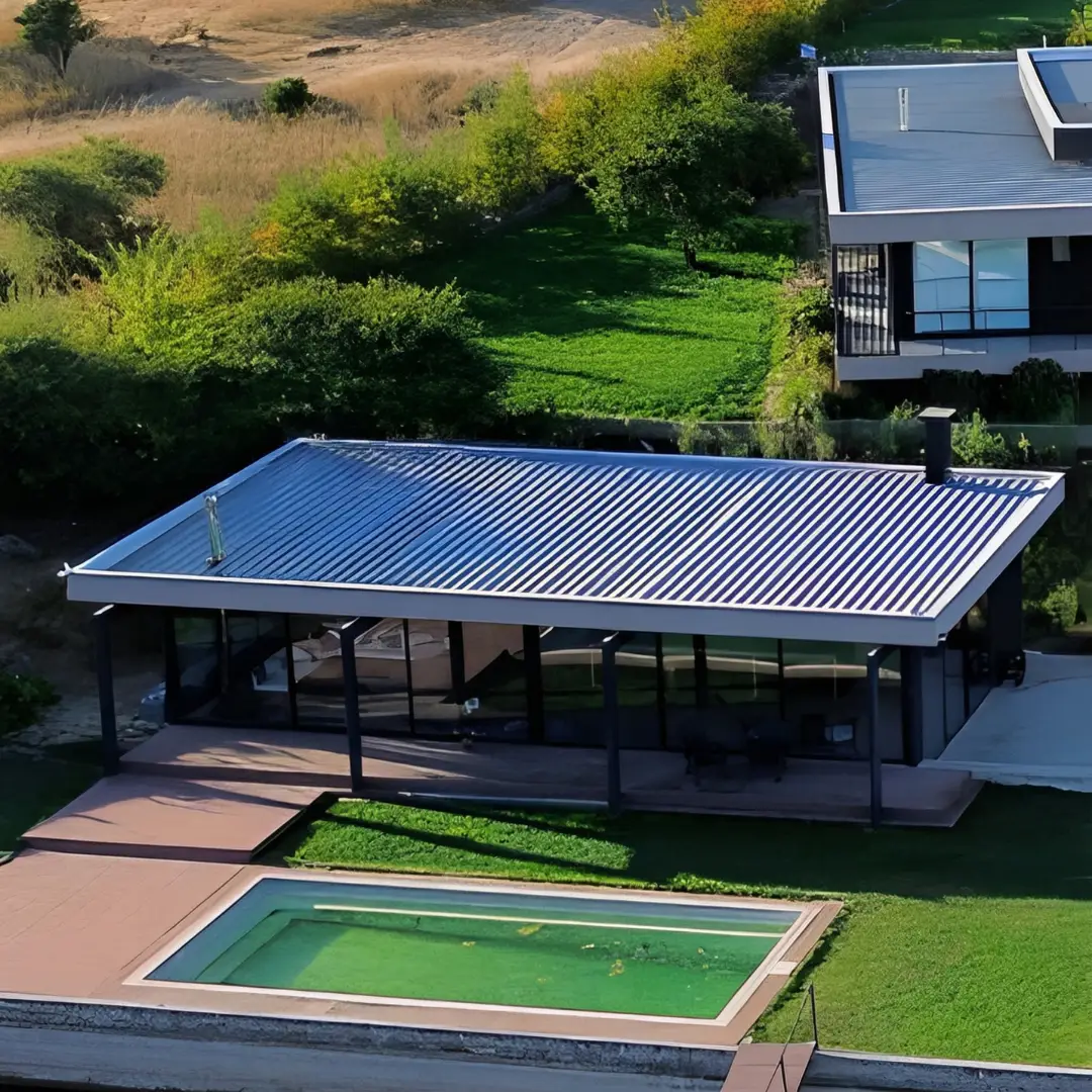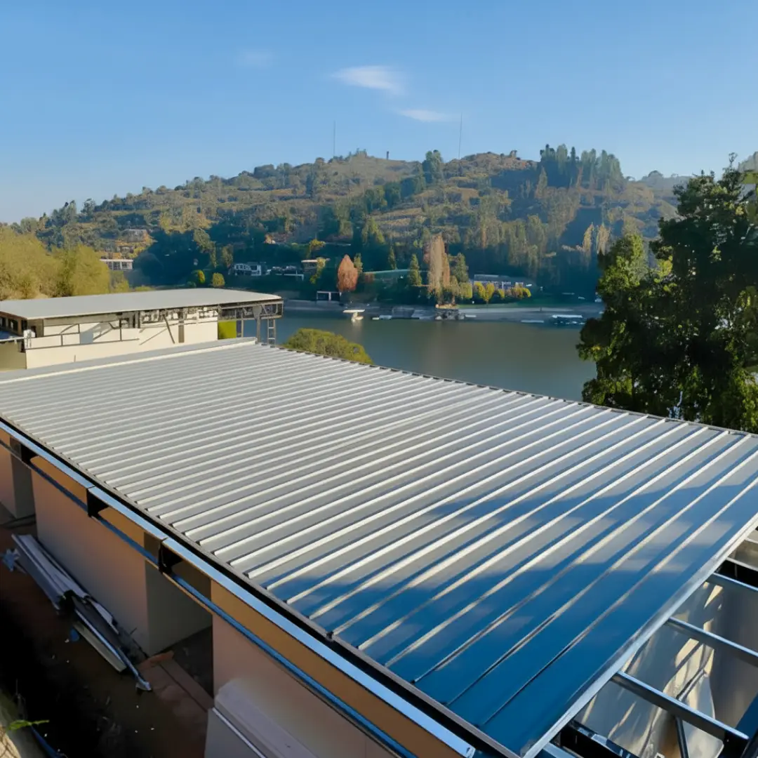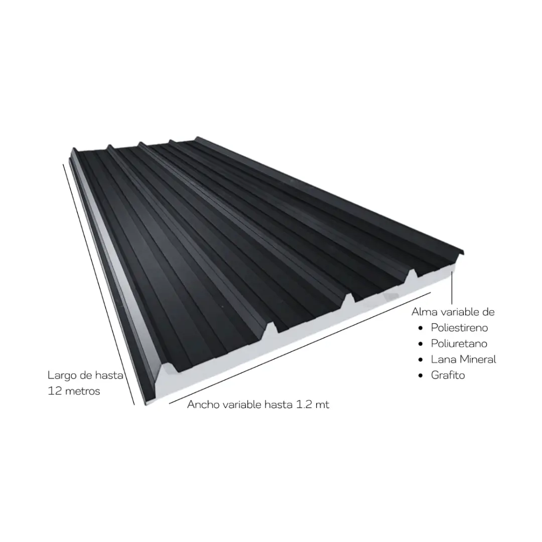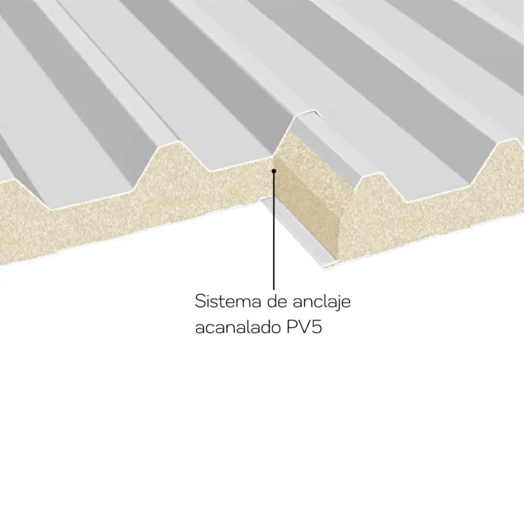 El Panel de Acero Prelacado de Techo de Drimek es un elemento constructivo con excelente aislación térmica y acústica, compuesto por dos chapas de acero prelacado que encapsulan un núcleo de PUR, PIR, lana mineral, poliestireno o grafito, materiales que además actúan como retardantes de fuego. Incorpora un ranurado PV5 que conduce eficientemente las aguas y un sistema de anclaje de hojalatería entre planchas que evita filtraciones, asegurando un alto nivel de estanqueidad y resistencia mecánica. Combinado con nuestra estructura mecano de acero galvanizado, permite conformar cubiertas robustas, antisísmicas y resistentes a condiciones climáticas exigentes.