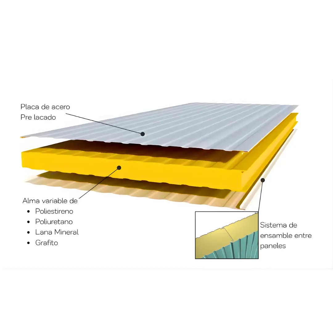 El Panel de Acero Prelacado de Drimek es una solución constructiva altamente eficiente, con aislamiento acústico y térmico, ideal para viviendas, galpones, industrias y comercios. Compuesto por dos chapas de acero prelacado y un núcleo aislante (PUR, PIR, lana mineral, poliestireno o grafito), ofrece resistencia mecánica, estanqueidad y propiedades ignífugas. Su sistema de unión machihembrado asegura un acabado homogéneo y refuerza el aislamiento.