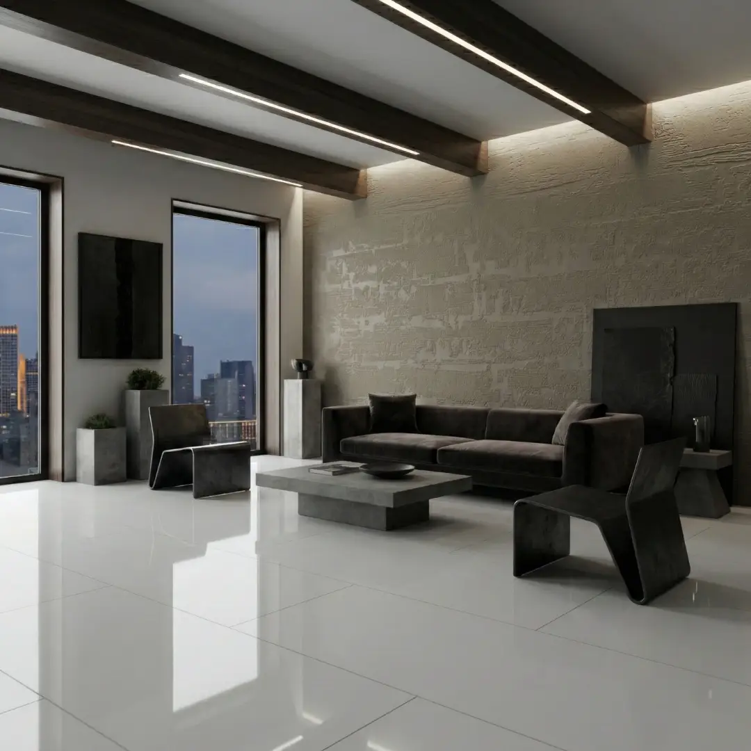Placas sólidas de gran formato inspiradas en la crudeza de los materiales constructivos. Reinterpretan la estética del concreto desgastado, el estuco y la piedra natural, ofreciendo una solución de revestimiento monolítico que aporta carácter y robustez visual inmediata sin necesidad de obra húmeda.