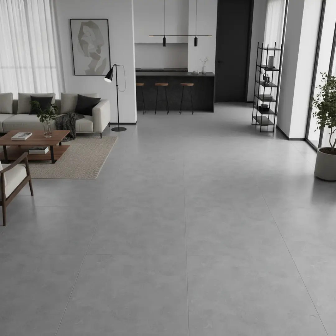 Porcelanato de gran formato en medidas monumentales de 90 cm x 265 cm, con un diseño de cemento pulido Impress que destaca por su realismo y variaciones tonales orgánicas. Su formato esbelto y continuo permite revestir muros de piso a techo sin interrupciones visuales, ofreciendo una estética industrial de lujo y una sofisticación arquitectónica inigualable.
