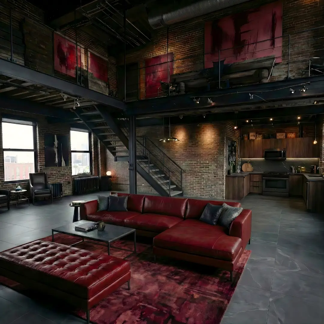 • Espacios que combinen elementos de metal, madera oscura y mobiliario de cuero.