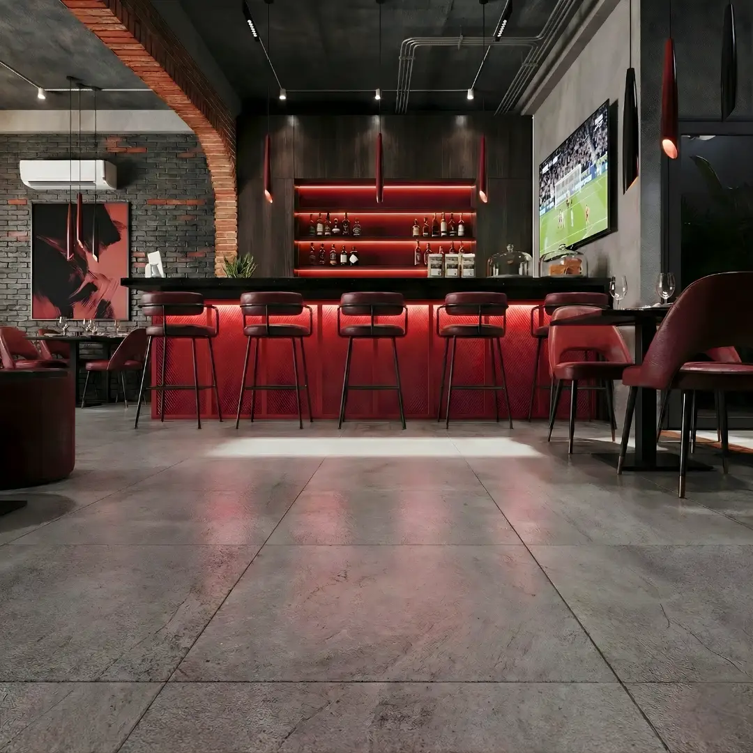 Porcelanato tipo cemento Urban en formato monumental de 120 cm x 120 cm. Presenta una tonalidad gris variable que transita desde tonos claros hasta medios, con un veteado pétreo sutil que aporta profundidad y carácter.