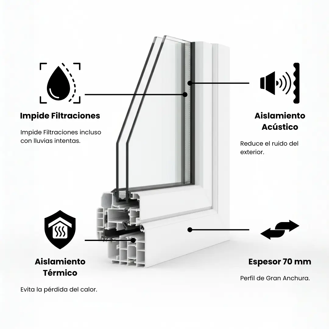 Las puertas y ventanas de aluminio con rotura de puente térmico están diseñadas para ofrecer un alto rendimiento en aislamiento térmico y acústico. Están fabricadas con perfiles de aluminio que incorporan un puente roto aislante y vidrio templado, lo que permite reducir la pérdida de calor a la mitad en comparación con ventanas comunes, disminuyendo así los costos de calefacción en aproximadamente un 30%. Además, cuentan con un aislamiento acústico superior a 29 decibelios, lo que contribuye a un ambiente interior más silencioso. Su diseño robusto y duradero asegura una vida útil mínima de 20 años, con resistencia al viento y hermeticidad que cumplen con altos estándares nacionales.
